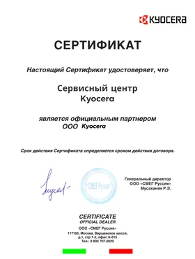 - Оригинальные запчасти в наличии. Мы используем только оригинальные комплектующие KYOCERA, которые всегда есть на собственном складе. Прямые закупки у производителя позволяют нам удерживать цены на низком уровне.